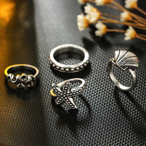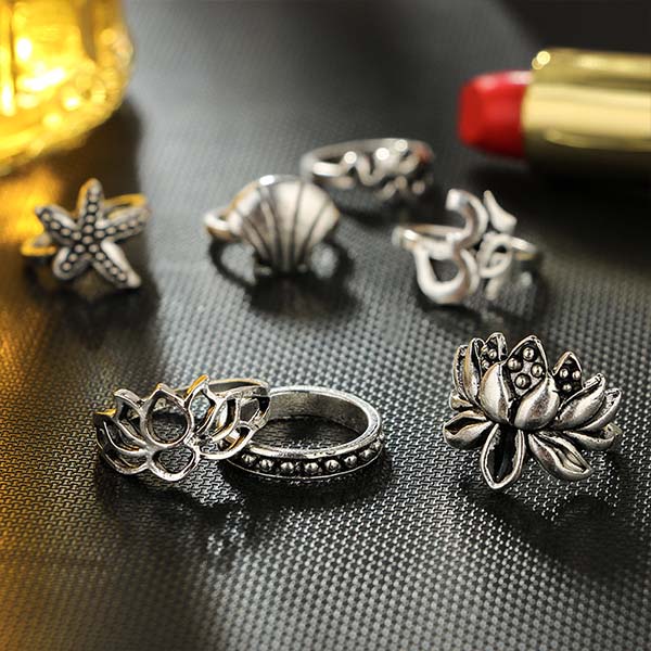 It is easy to show your persinality with rings set.Two hollow out rings which can set off your fair skin,