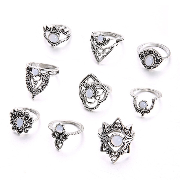 and faux gem inlaid design make this ring set look so delicate and attractive. Consists of 9 pieces rings,