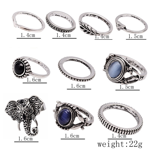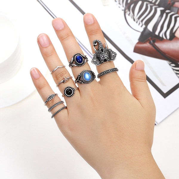 Add a dash of retro yet stylish flavor to your look with the help of this ring set. It consists of 10 pieces