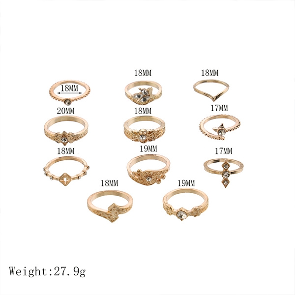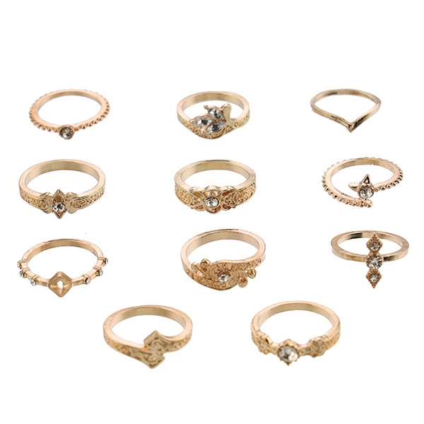 Retro Style Rhinestone Inlaid Alloy Ring Set 11 pcs/Set