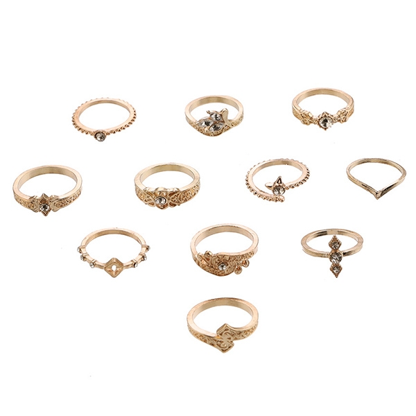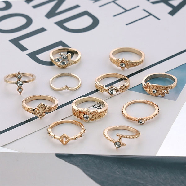 This ring set comes with a classic yet stylish gold tone,including 11 pieces different rings,