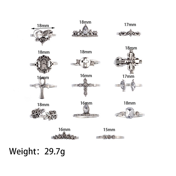Retro Style Rhinestone Inlaid Ring Set 14 pcs/Set