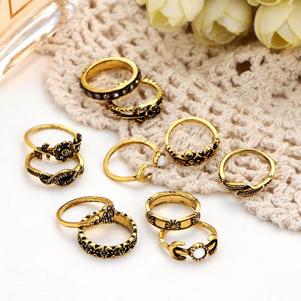 Retro Style Rose/Leaf Shape Carving Ring Set 11pcs/Set