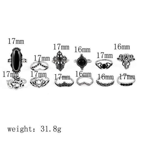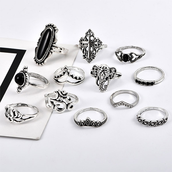 Retro Style Silver-tone Alloy Ring Set 12 pcs/Set