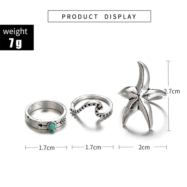silver tone,including 3 pieces different rings,this ring set is a perfect addition for a fashionable look.