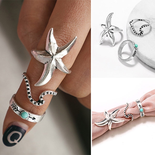 It is a cool way to embellish your charming and slender fingers with this ring set. It comes with a retro yet stylish