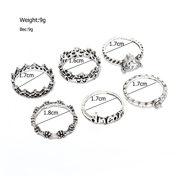 Retro Style Silver-tone Alloy Ring Set 6 pcs/Set