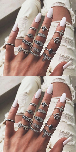 This ring set comes with a retro yet classic silver tone,including 14 pieces different rings,which can