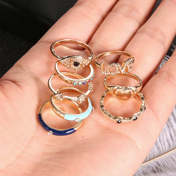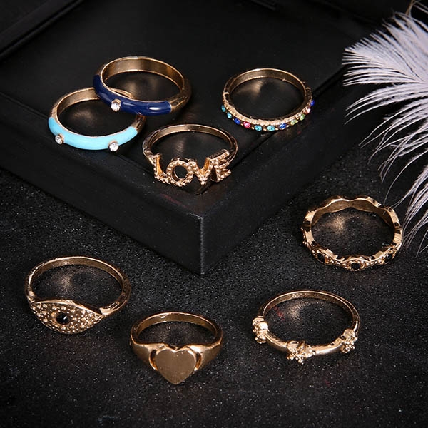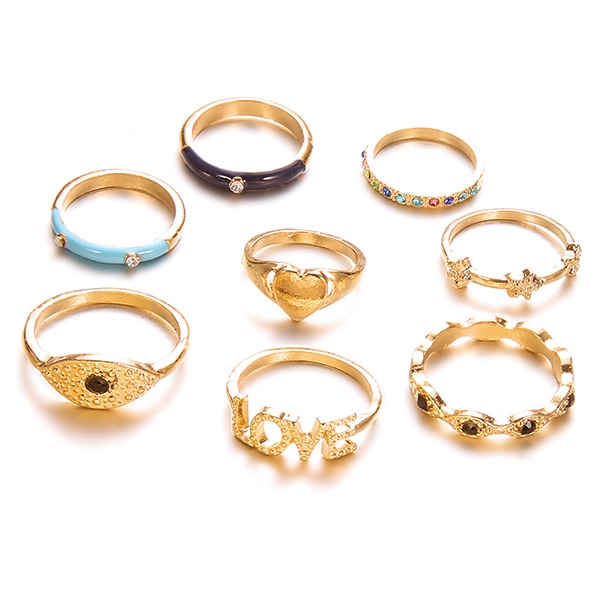 This is a fantastic rings set to embellish your charming and slender fingers. It consists of 8 pieces