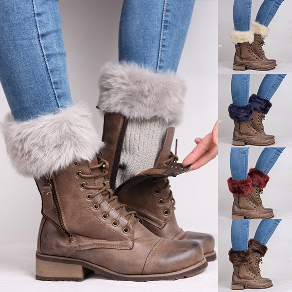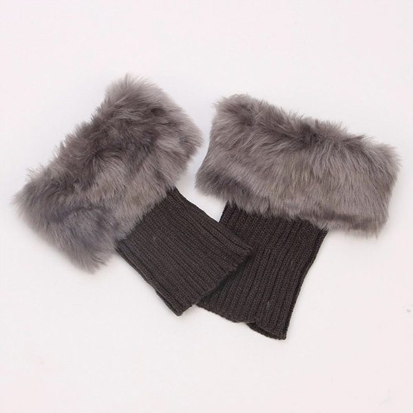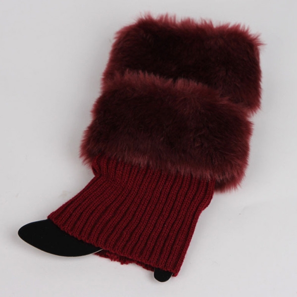 Fashion Faux Fur Spliced Knit Leg Warmers