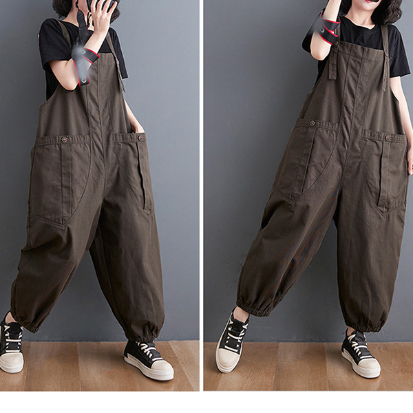 This jumpsuit features fashion styling with practical adjustable shoulder strap construction and functional patch pockets design for modern comfortable sophistication. And the loose fit offers comfortable movement and contemporary styling. Perfect for casual occasions, fashion styling, or modern comfortable coordination.