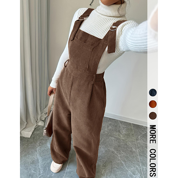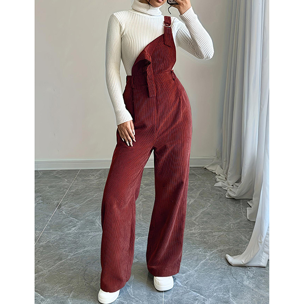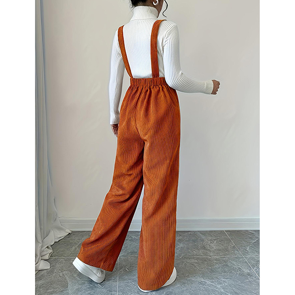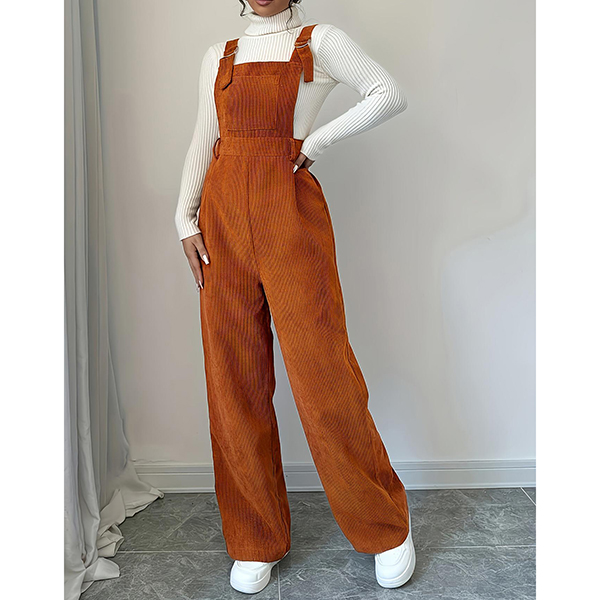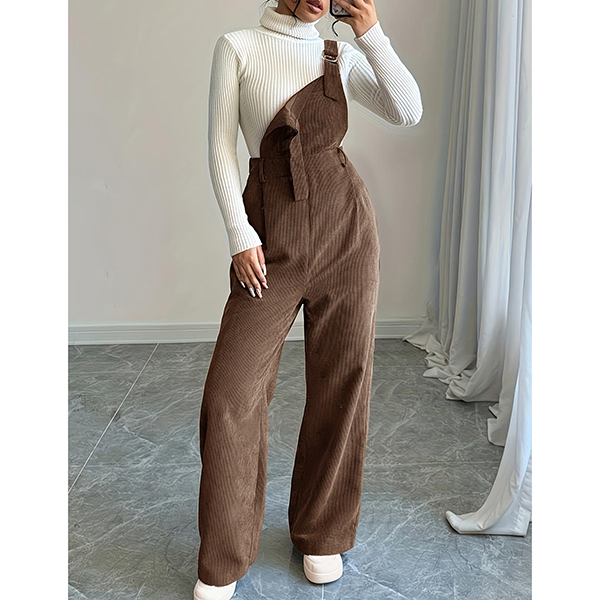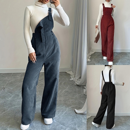 Fashion Adjustable Shoulder Strap Straight-cut Corduroy Suspender Jumpsuit
