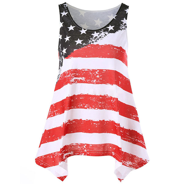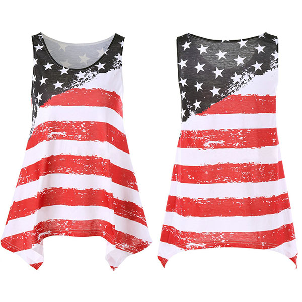 Your off-duty days or casual weekends call for such a laid-back and cozy tank top. Its irregular hem and American flag