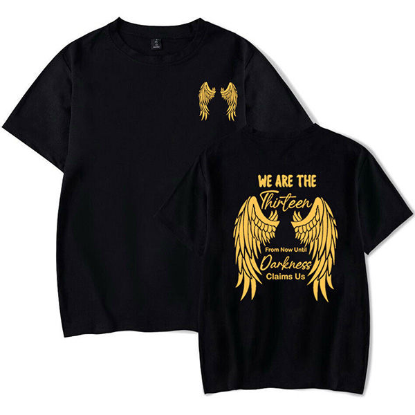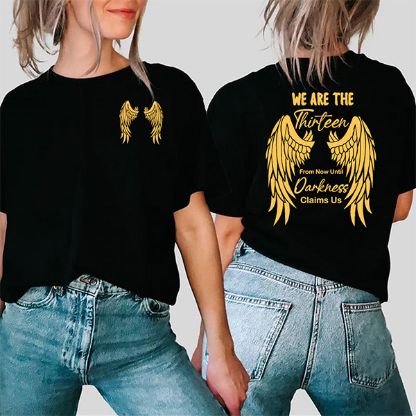This striking and unique shirt features a bold and eye-catching angel wing print that instantly elevates the overall design and aesthetic. Tucking it into a pair of sleek, dark-wash jeans or tailored trousers can create a chic, sophisticated ensemble!