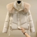 Fashion Artificial Fur Spliced Collar Long Sleeve Quilted Jacket