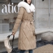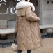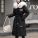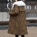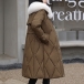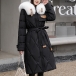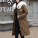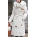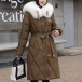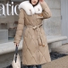 Fashion Artificial Fur Spliced Collar Long Sleeve Self-tie Quilted Longline Coat