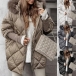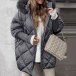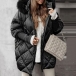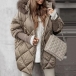Fashion Artificial Fur Spliced Hooded Long Sleeve Front Zipper Quilted Coat
