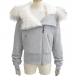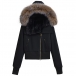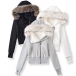 Fashion Artificial Fur Spliced Hooded Long Sleeve Front Zipper Warm Plush Lined Crop Jacket