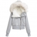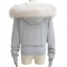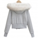 This crop jacket features a hood with artificial fur splicing that adds a chic and trendy element to the design, while the long sleeves provide extra warmth and coverage. The plush lining adds extra warmth and coziness, making it perfect for chilly days and evenings. This jacket is a stylish and cozy outerwear piece that will keep you warm and fashionable during the colder months.