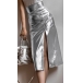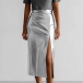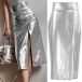 Fashion Artificial Leather PU Slit High-rise Pencil Skirt