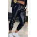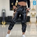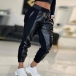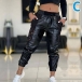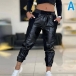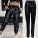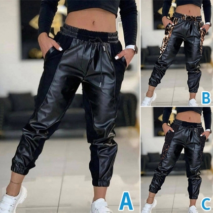 Fashion Artificial Leather PU Spliced Drawstring Waist Pants