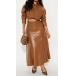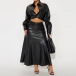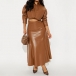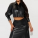Fashion Artificial Leather PU Two-piece Set Consist of Crop Jacket and Maxi Skirt