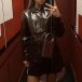 Fashion Artificial Leather PU Two-piece Set Consist of Jacket and Skirt