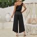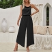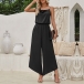 Fashion Asymmetrical Shoulder Draped Neck Sleeveless Wide-leg Jumpsuit