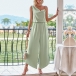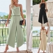 This is a stylish and sophisticated jumpsuit that features an asymmetrical shoulder design, draped neckline, sleeveless silhouette, and wide-leg pants for a fashionable and elegant look. Pair it with heels and statement jewelry for a polished and glamorous ensemble, or dress it down with flats and a denim jacket for a more casual and effortless look.