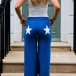 Fashion Back Star Printed Mid-rise Wide-leg Elastic Pants