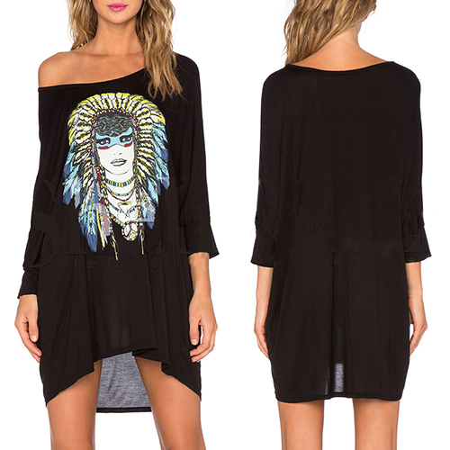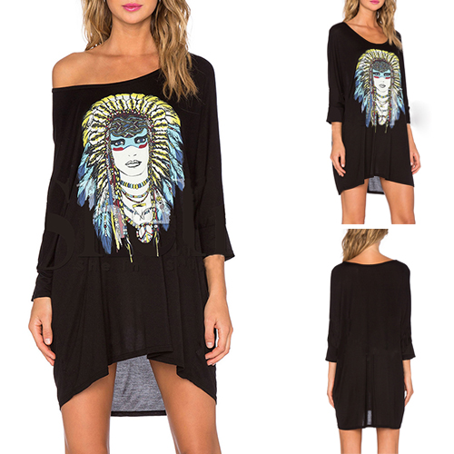 Equipped with a round neck,bat sleeve and a loose silhouette,this dress can give you