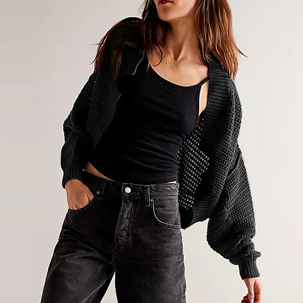 This cardigan features batwing sleeves and a knitted fabric, creating a stylish and cozy look.Wanna have a try?