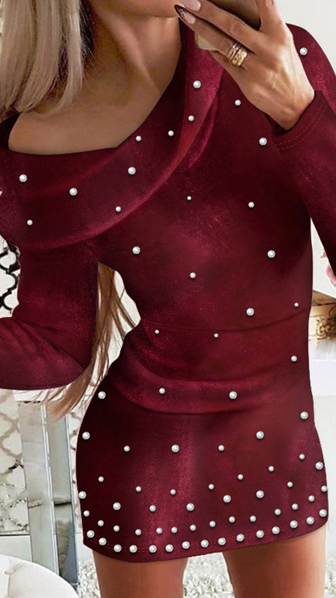 Fashion Bead One-shoulder Long Sleeve Bodycon Dress