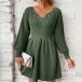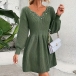 Fashion Bead V-neck Long Sleeve Cinch Waist Sweater Dress