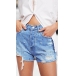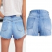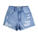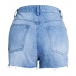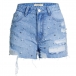 These denim shorts feature a high-rise waistline, frayed hem, and beaded detailing. They are made of a denim fabric that is stretchy and comfortable. Pair these shorts with a cute top and sandals for a complete look.