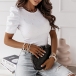 This fashionable ribbed shirt features a beaded decoration, round neck and puff short sleeves, adding a touch of elegance and glamour to your outfit. The high-quality fabric ensures a comfortable fit and the ribbed texture adds a unique and stylish look.