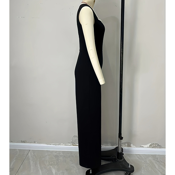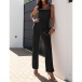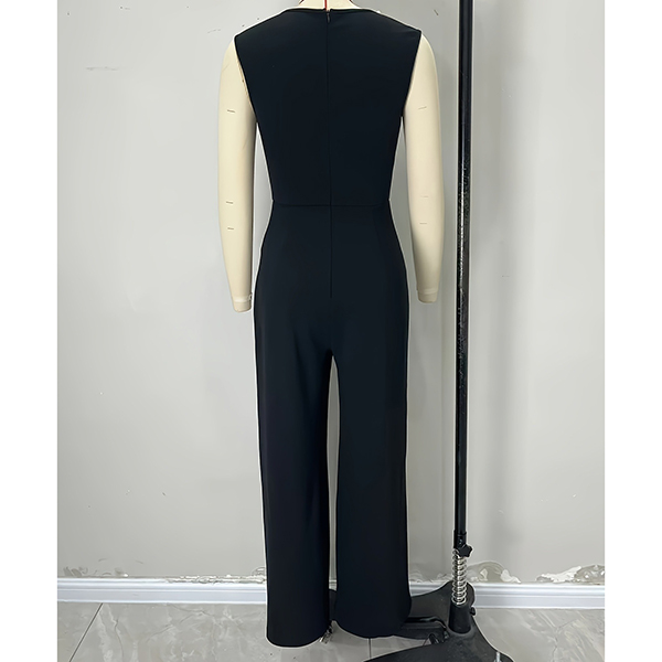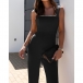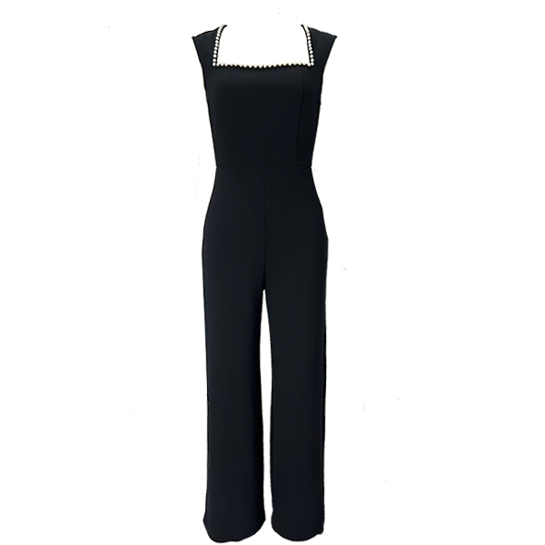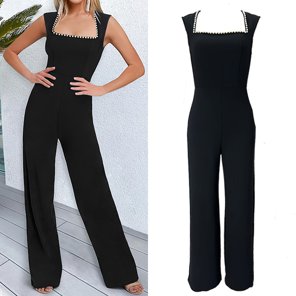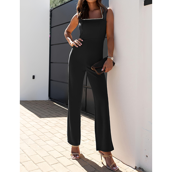 Fashion Beaded Square Neck Sleeveless High-rise Straight-cut Jumpsuit