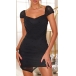 Fashion Beaded V-neck Cap Sleeve Irregular Hemline Bodycon Dress