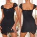 This stylish black dress features a beaded design, a V-neckline, cap sleeves, and an irregular hemline, creating a chic and sophisticated look. Pair it with heels and minimal accessories for a stunning and elegant outfit.