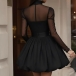 Fashion Black Sheer Mesh Illusion Dress - 3D Rosette & Puff Skirt