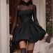 This dramatic black dress features sophisticated black styling with innovative sheer mesh construction and enchanting illusion design for contemporary artistic sophistication. The 3D rosette detailing provides dimensional artistry with romantic contrast whilst the puff skirt offers dramatic volume and fairy-tale charm. Wanna have one?