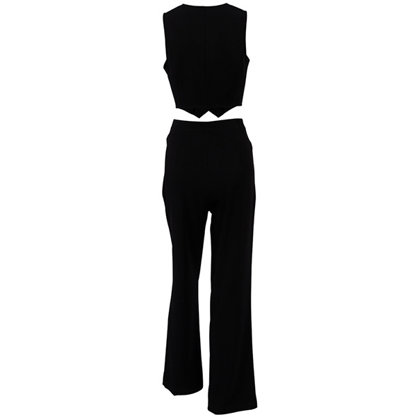 Fashion Black Two-piece Set Consist of Crop Vest and Straight-cut Pants