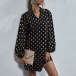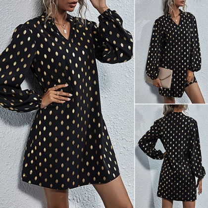 Fashion Black V-neck Polka Dot Printed Long Sleeve Dress