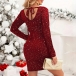 Fashion Bling-bling Crew Neck Long Sleeve Backless Bodycon Party Dress