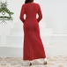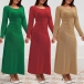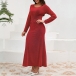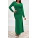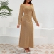 Fashion Bling-bling Crew Neck Long Sleeve Cinch Waist Maxi Party Dress
