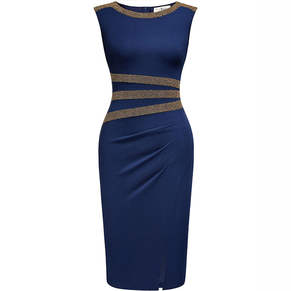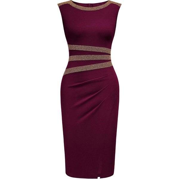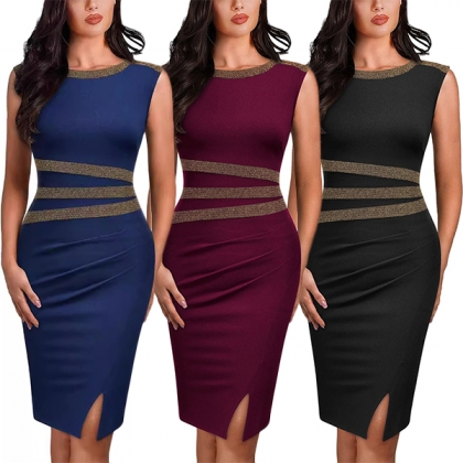 Fashion Bling-bling Crew Neck Sleeveless Slit Bodycon Dress