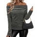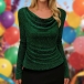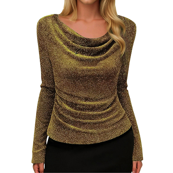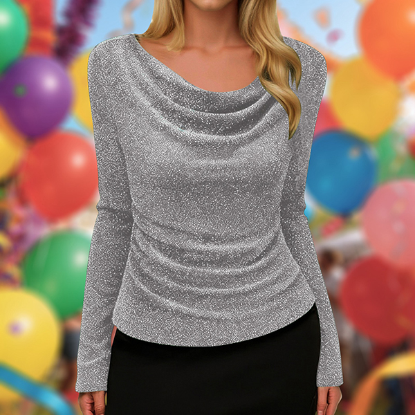 Fashion Bling-bling Draped Neckline Long Sleeve Shirt