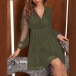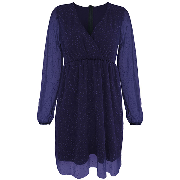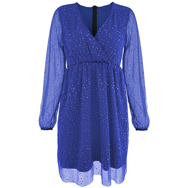Fashion Bling-bling Gauze Spliced 3/4-Long Sleeve V-neck Mini Dress