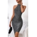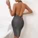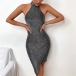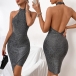 Fashion Bling-bling Halter Mock Neck Backless Irregular Hemline Party Dress