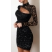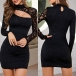 Fashion Bling-bling Lace Spliced Long Sleeve Cutout Bodycon Party Dress